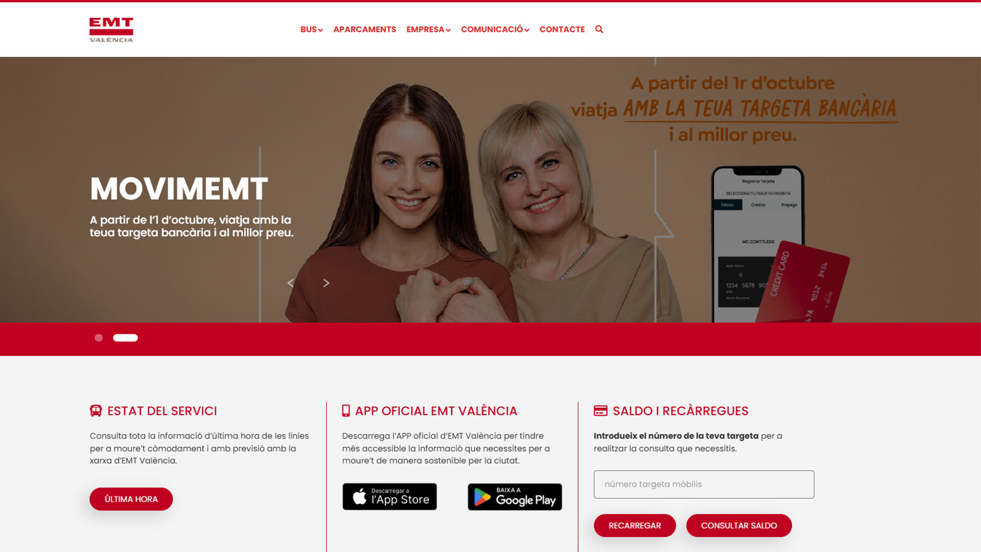 L'EMT estrena un web més accessible i adaptat al mòbil per a gestionar el sistema de pagament MovimEMT amb targeta