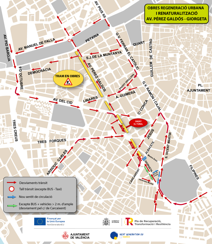 2026-01-13 04:00:00.0 Ocupació del carril junt a la mitjana en el pas inferior Antonio Ferrandis-Fernando Abril Martorell per treballs de reparació de la bionda.