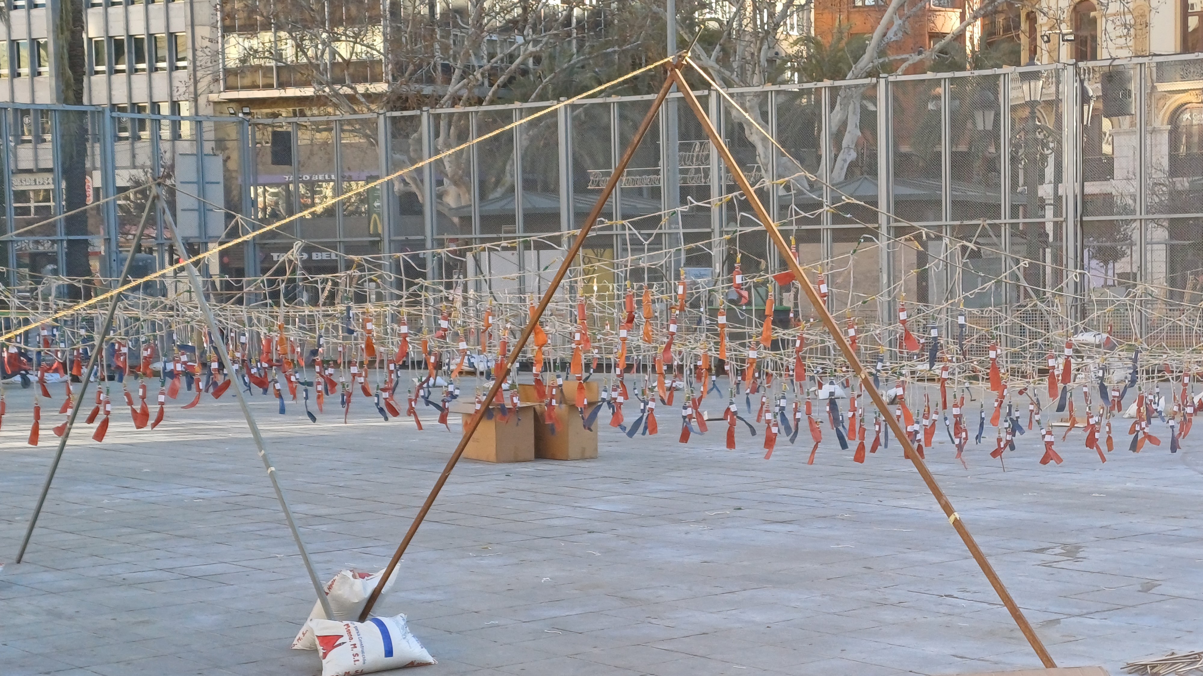 • Momento del montaje de la quinta mascletà de Fallas 2024