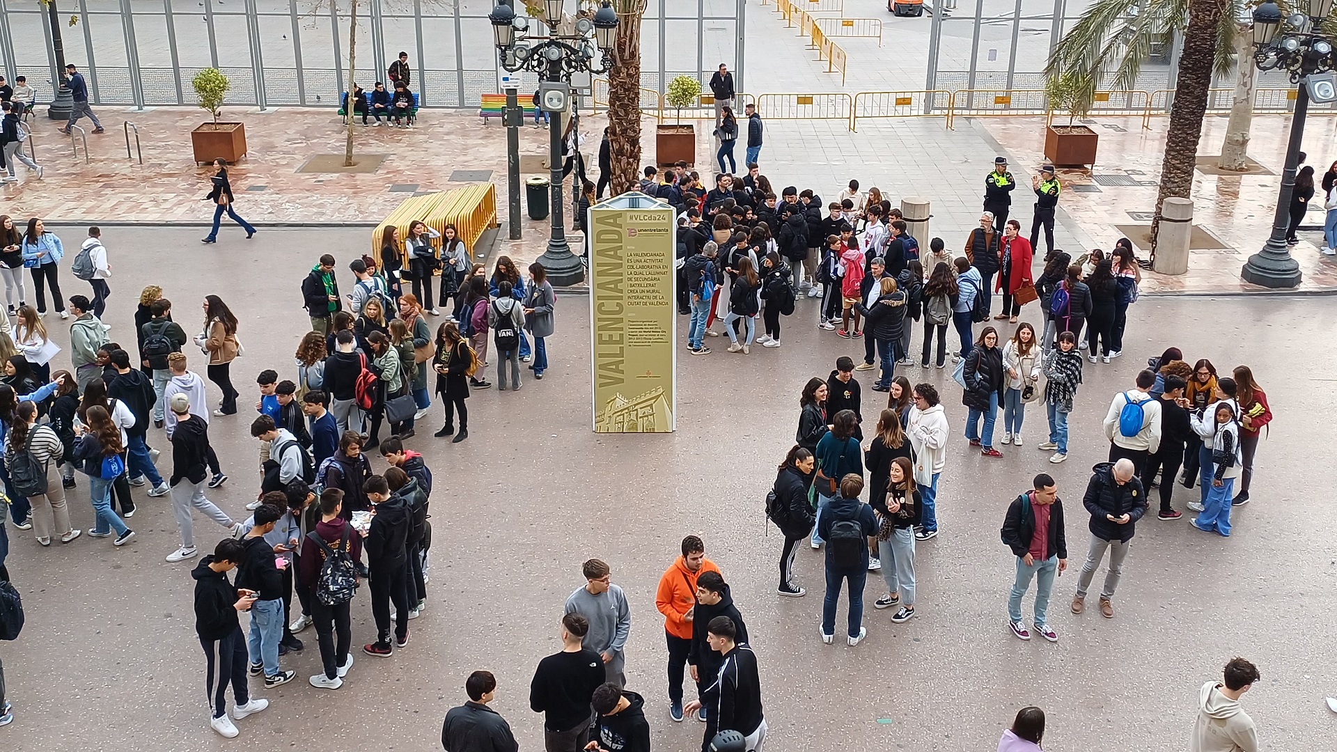 La plaza del Ayuntamiento ha acogido esta mañana a más de 2.300 jóvenes que han participado en la actividad conocida como “Valencianada”. Esta consiste en un ejercicio de geolocalización y conocimiento de la ciudad, organizado por la asociación Unentretants (Red Cooperativa de Experiencias TIC para la Enseñanza del Valenciano), que cuenta con la colaboración de las concejalías de Acción Cultural, Patrimonio y Recursos Culturales y de Movilidad. EL objetivo es acercar el patrimonio cultural local a la juventud a través del uso de las TIC.
