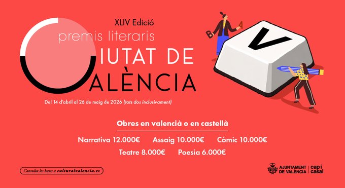 El Ayuntamiento abre el plazo de presentación para los Premios Literarios Ciutat de València 2026