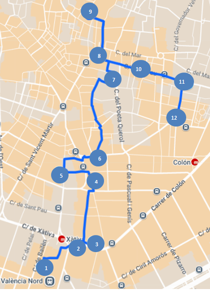 1. Estació del Nord (pdf 276 kb).2. Plaça de Bous (pdf 620 kb).3. Hotel Metropol (pdf 246 kb).