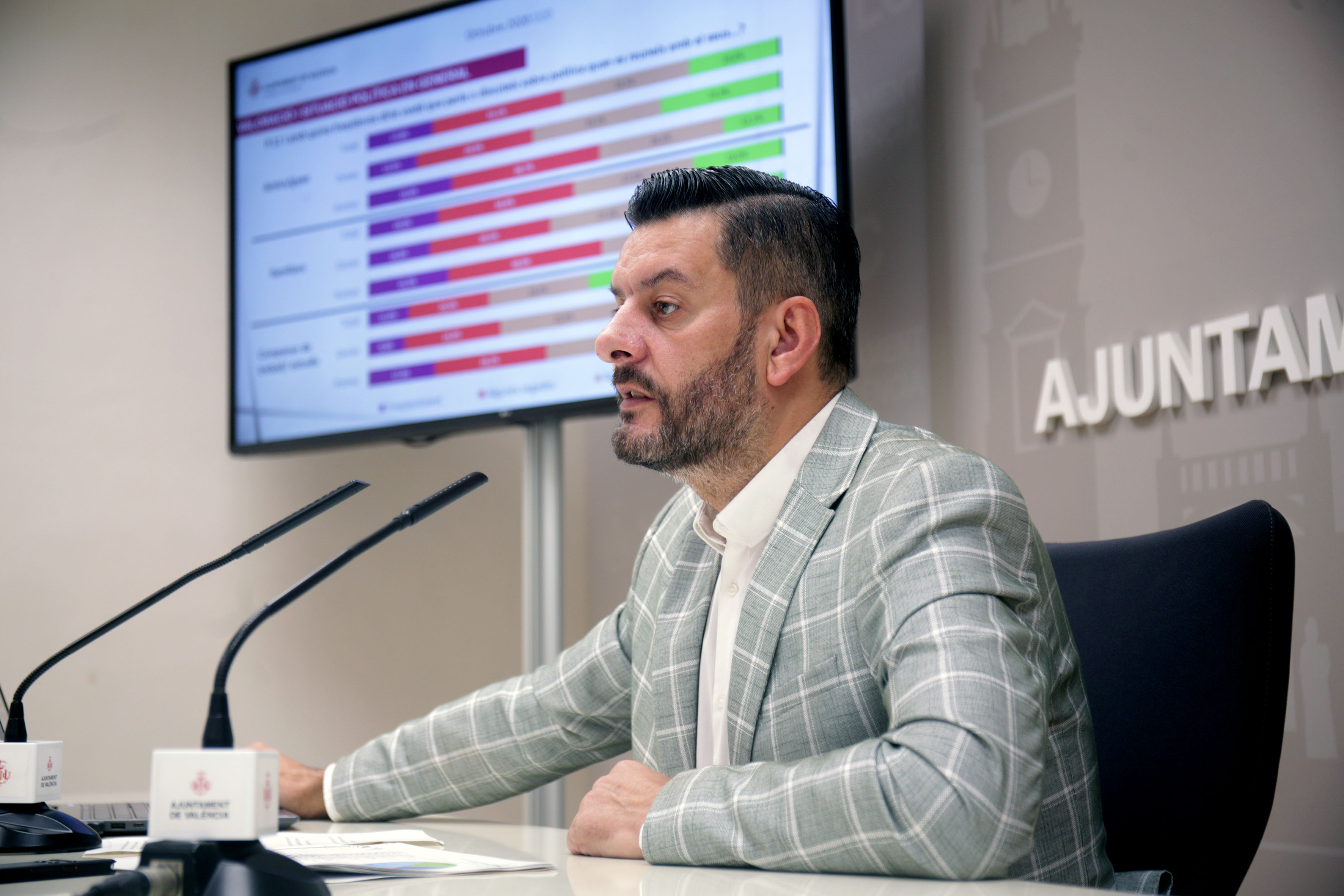 La encuesta se ha realizado sobre una muestra de 1.320 entrevistas entre la ciudadanía valenciana (personas empadronadas mayores de 18 años). Tal como ha explicado el concejal, la ciudadanía ha puntuado con una media de 8,6 su grado de «satisfacción de vivir en la ciudad de València, una nota que no ha variado desde el inicio de este mandato», ha subrayado Galiana.