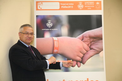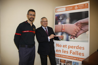 El concejal delegado de Seguridad Ciudadana, Miguel Domínguez, ha presentado esta mañana la campaña “No et perdes en les Falles”, una iniciativa llevada a cabo por el Ayuntamiento de Valencia en colaboración con los Bomberos y Protección Civil que, a través de unas pulseras identificativos, tiene por objetivo solucionar de forma efectiva los extravíos de niños durante los días falleros, que tienen una gran afluencia de personas.