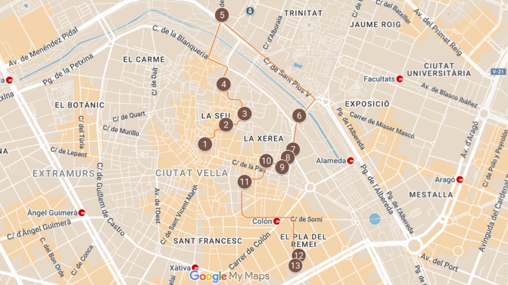 1. Place d’El Miracle del Mocadoret (pdf 356 kb).2. Cathédrale, chapelle et chaire (pdf 298 kb).3. Paroisse de Sant Esteve (pdf 472 kb).4. Résidences universitaires (pdf 351 kb).5. Place Santa Mònica (pdf 356 kb).6. Statue de Saint Vincent Ferrier Pont del Real (pdf 362 kb).7. Couvent des prêcheurs (pdf 367 kb).8. Statue de Saint Vincent Ferrier place de Tetuan (pdf 363 kb).9. Maison natale de Saint Vincent Ferrier – « El pouet » (pdf 374 kb).10. Azulejos rue de La Mar, 37 (pdf 362 kb).11. Église Corpus Christi (pdf 367 kb).12. Basilique de Saint Vincent Ferrier (pdf 370 kb).13. Établissement scolaire des pères dominicains « Saint Vincent Ferrier » (pdf 367 kb).