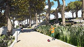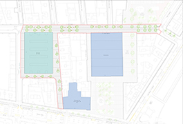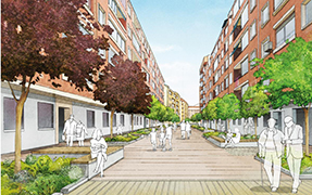 La proposta establix un vial rodat asfaltat, amb voreres àmplies i bandes d'aparcament. L'espai restant es tractarà com una àmplia zona enjardinada amb jocs infantils i aparells biosaludables.
