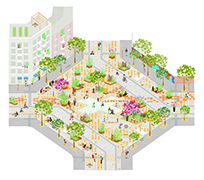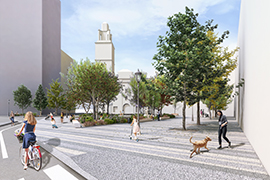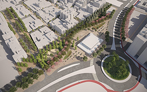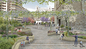 Per a dotar a aquest vial del caràcter de vial per als vianants es planteja una secció tipus en plataforma única que permet a més la disposició d'arbratge i mobiliari urbà. En l'actual “Zona Santiago” se situarà una xicoteta pista de bàsquet i una zona de cautxú amb jocs infantils. Comptarà amb un gran arbre central i jardineres, a més d'una xicoteta graderia com a zona de trobada.
