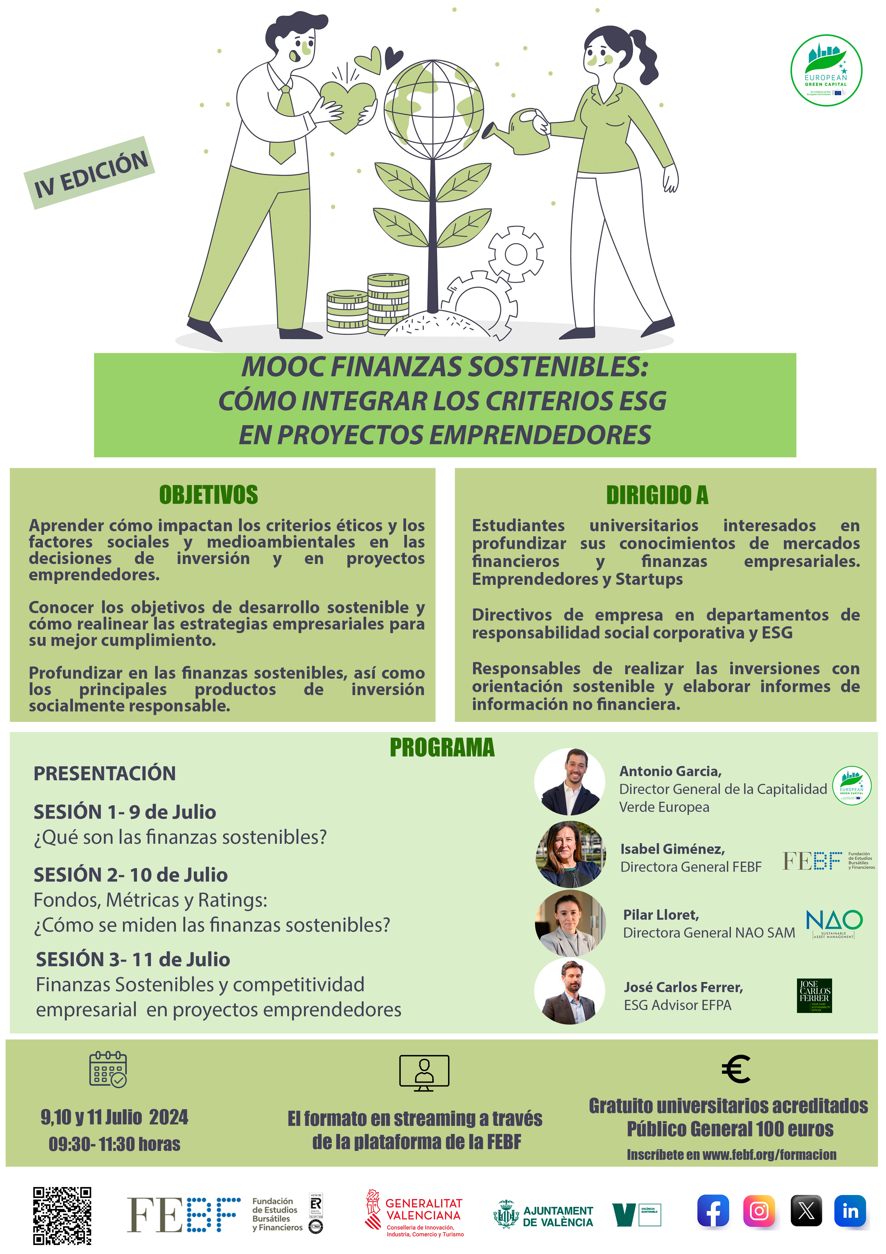 MOOC Finanzas Sostenibles: Cómo Integrar los Criterios ESG en Proyectos Emprendedores - Capital Verde Europea 2024 - València