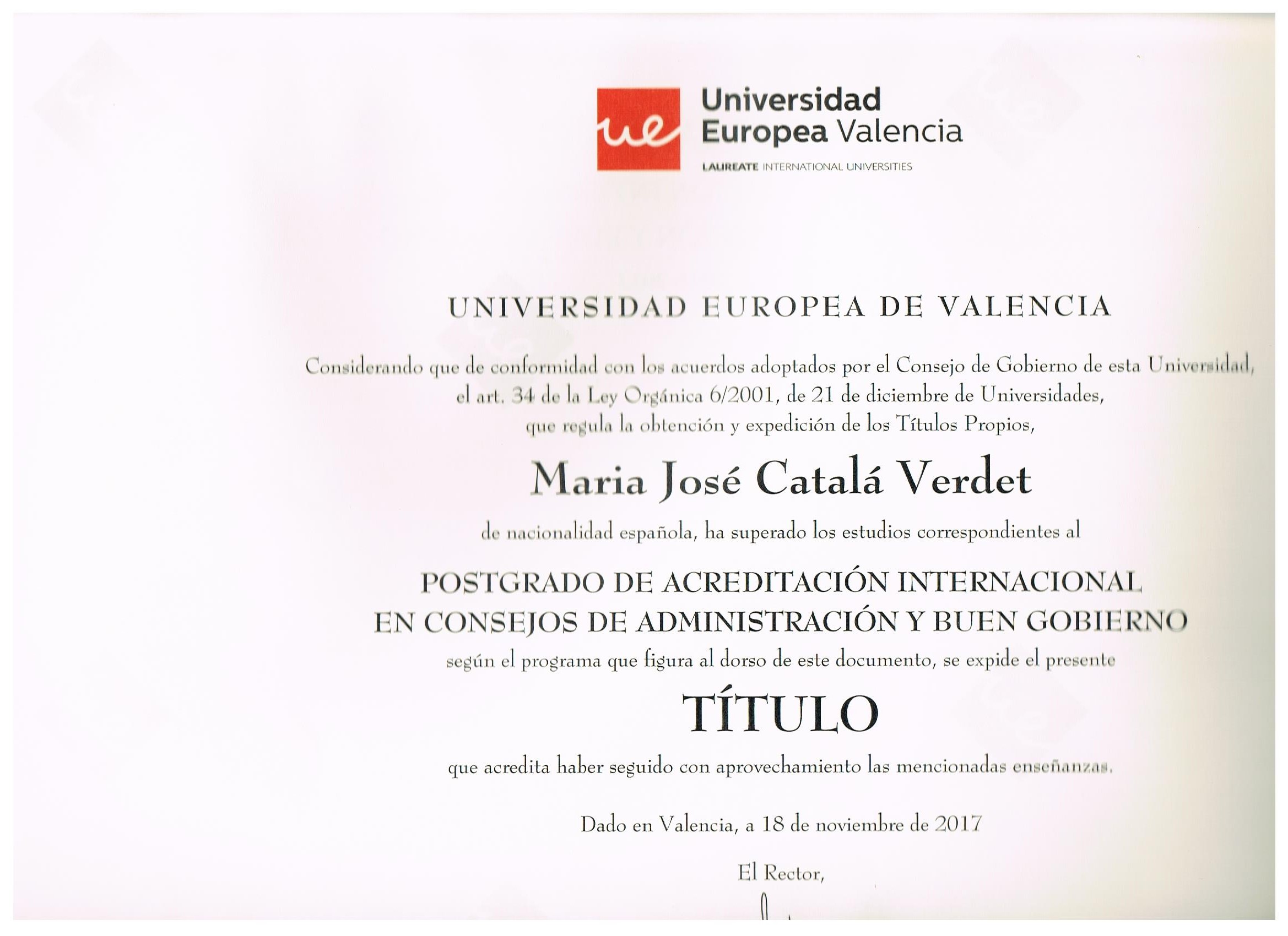 Profundicé en esta formación doctorándome en Derecho Público por la Universidad CEU-Cardenal Herrera. Estoy colegiada en el Ilustre Colegio de Abogados de Valencia y con un Máster MBA en Dirección y Gestión de Empresas.